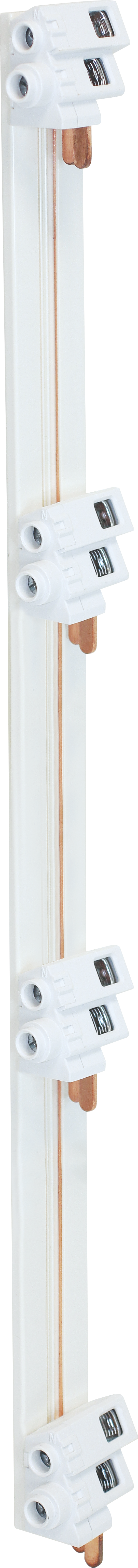 PEIGNE VERTICAL POUR 4 RANGEES, AVEC 1 BORNIER 1P+N A CHAQUERANGEE