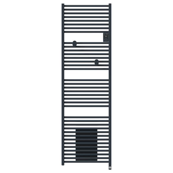 RADIATEUR SECHE-SERVIETTES ELECTRIQUE CONNECTE RIVA 5 AVEC SOUFFLERIE 2000W GRIS ARDOISE -BOITIER DE COMMANDE DIGITALEAVEC L'AFFICHAGE DE L'HEURE ET
