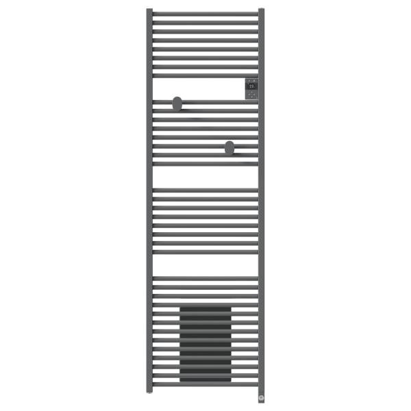 RADIATEUR SECHE-SERVIETTES ELECTRIQUE CONNECTE RIVA 5 AVEC SOUFFLERIE 2000W GRIS MENHIR -BOITIER DE COMMANDE DIGITALE AVEC L'AFFICHAGE DE L'HEURE ET