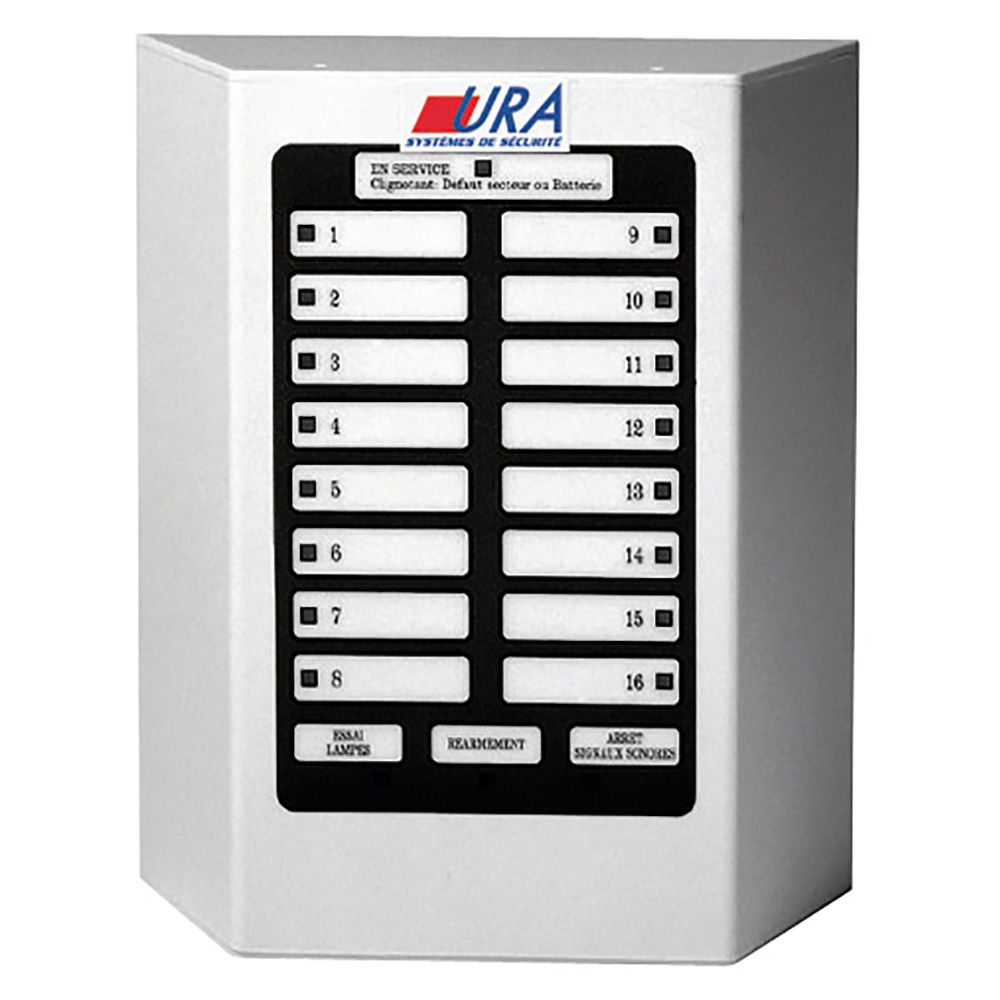 TABLEAU D'ALARME TECHNIQUE AT- 16 CONTACTS NO/NF EN ENTREE- 1 SORTIE SYNTHESE 12VDC 50MAAVEC 1 CONTACT SYNTHESE - ALIMENTATION 250VAC-50HZ SECOURUE